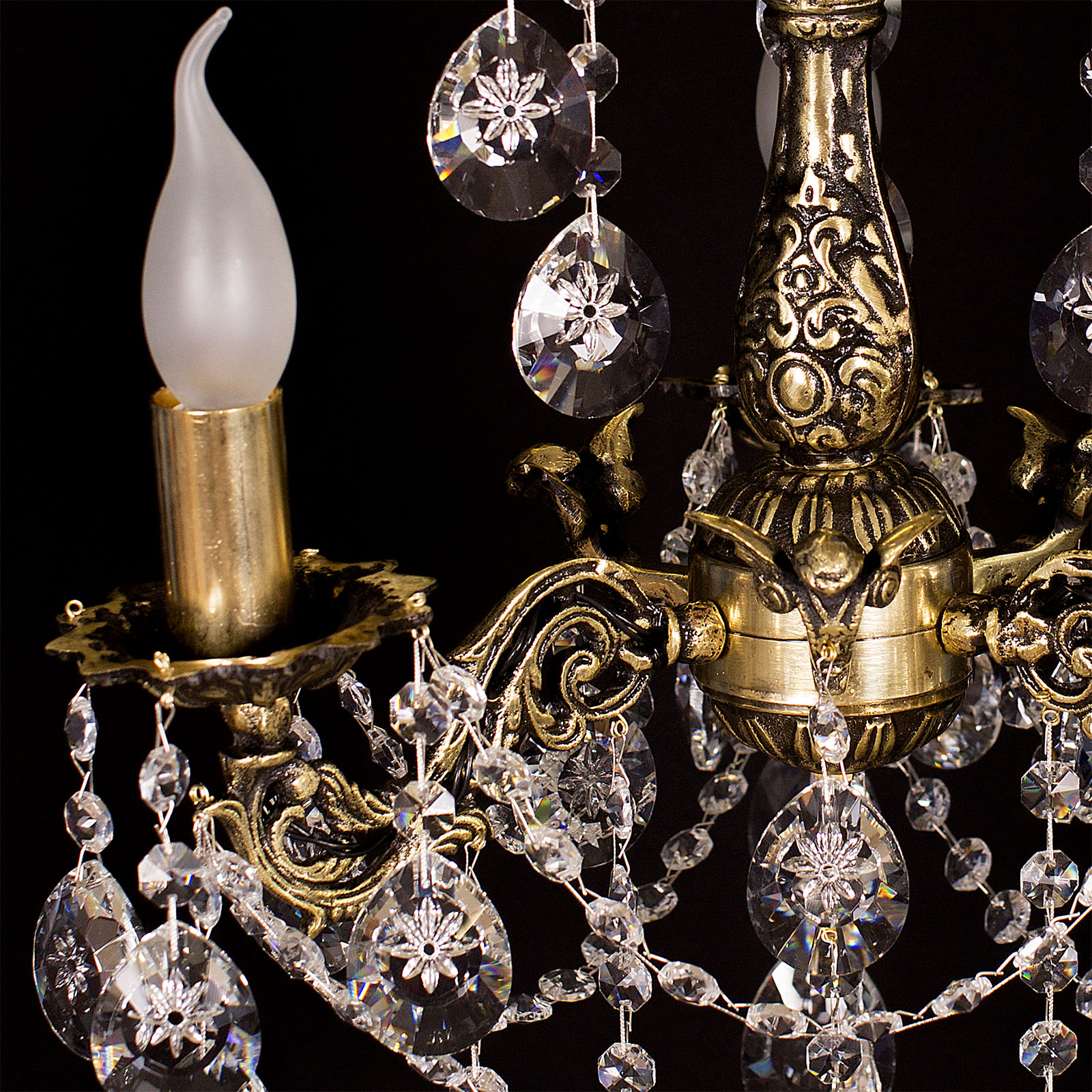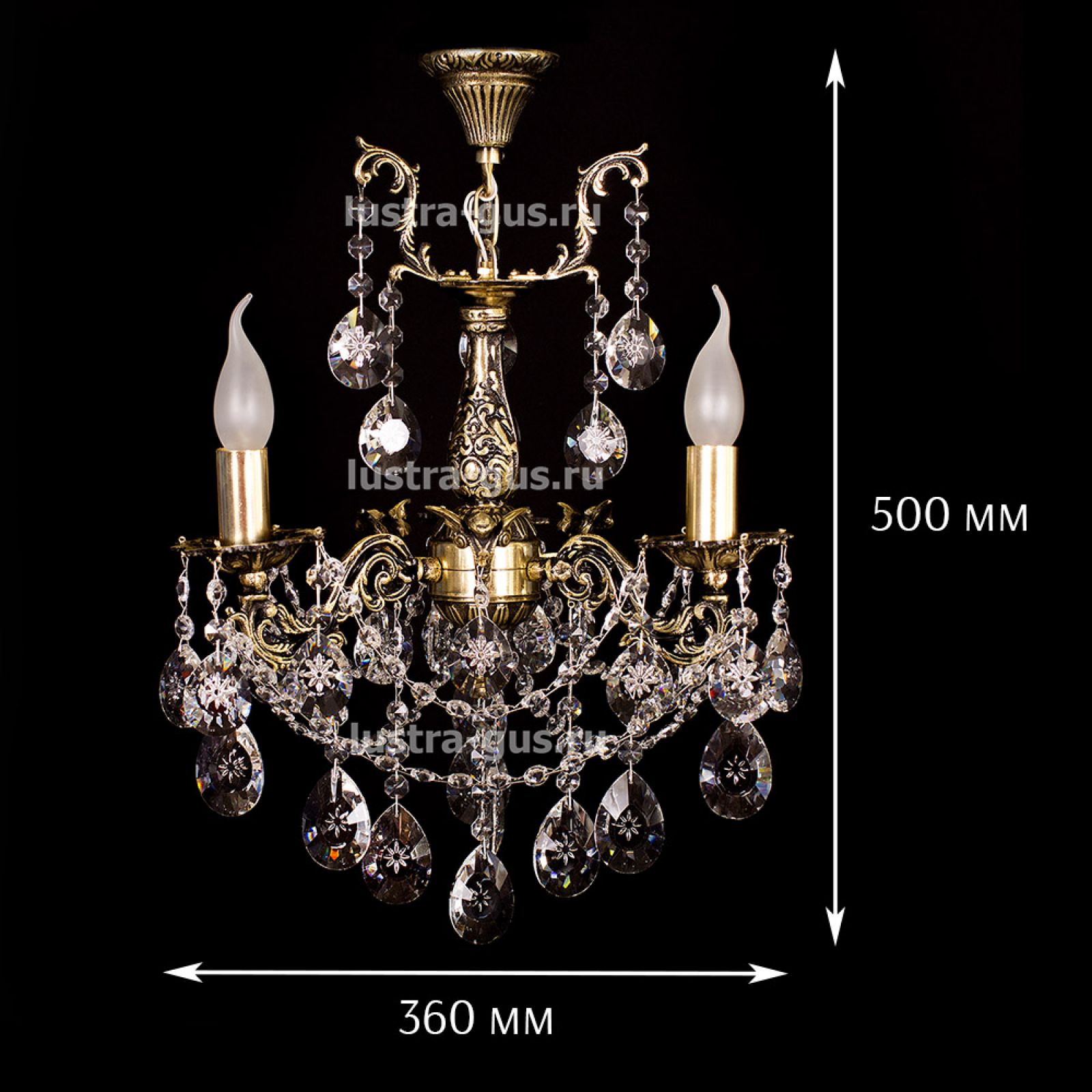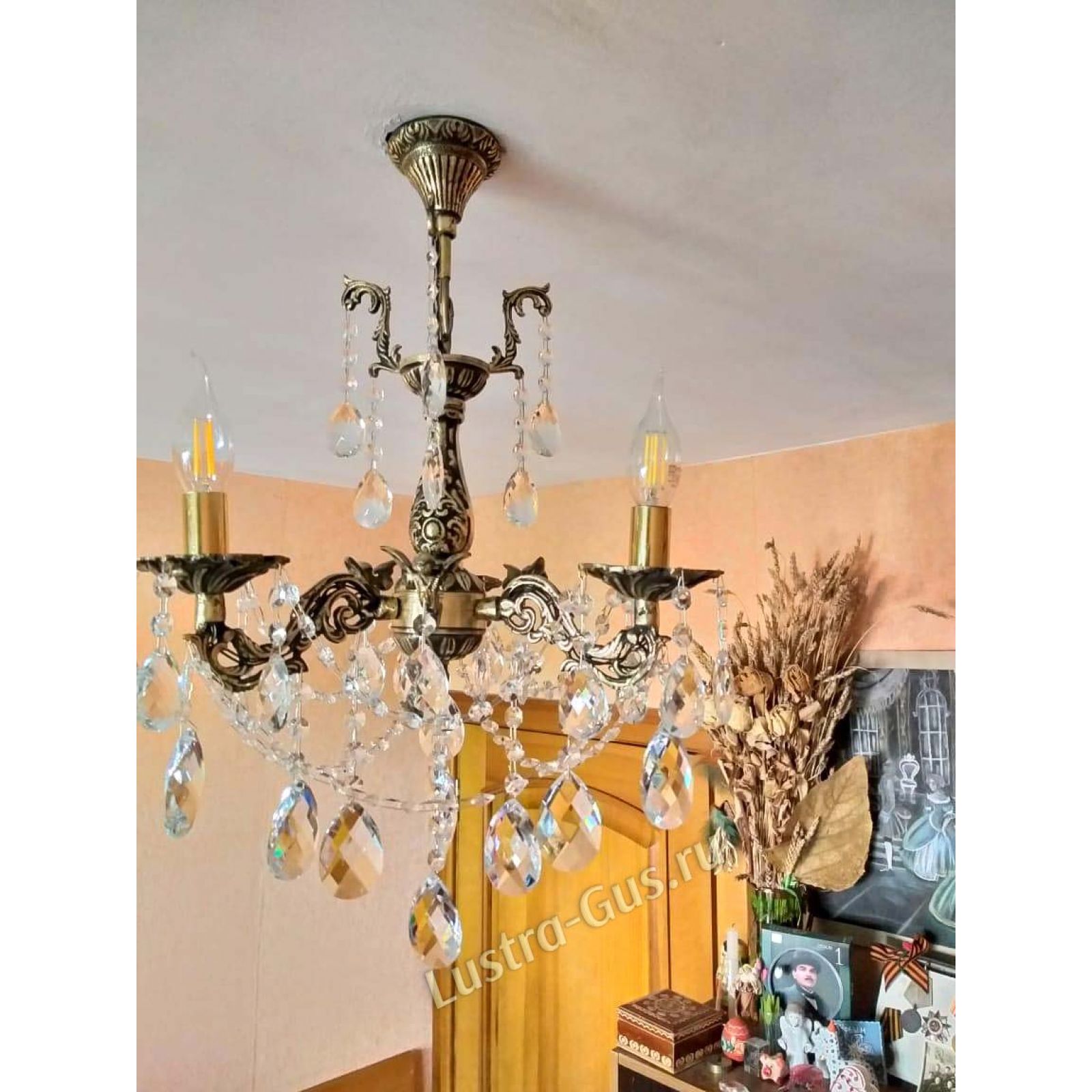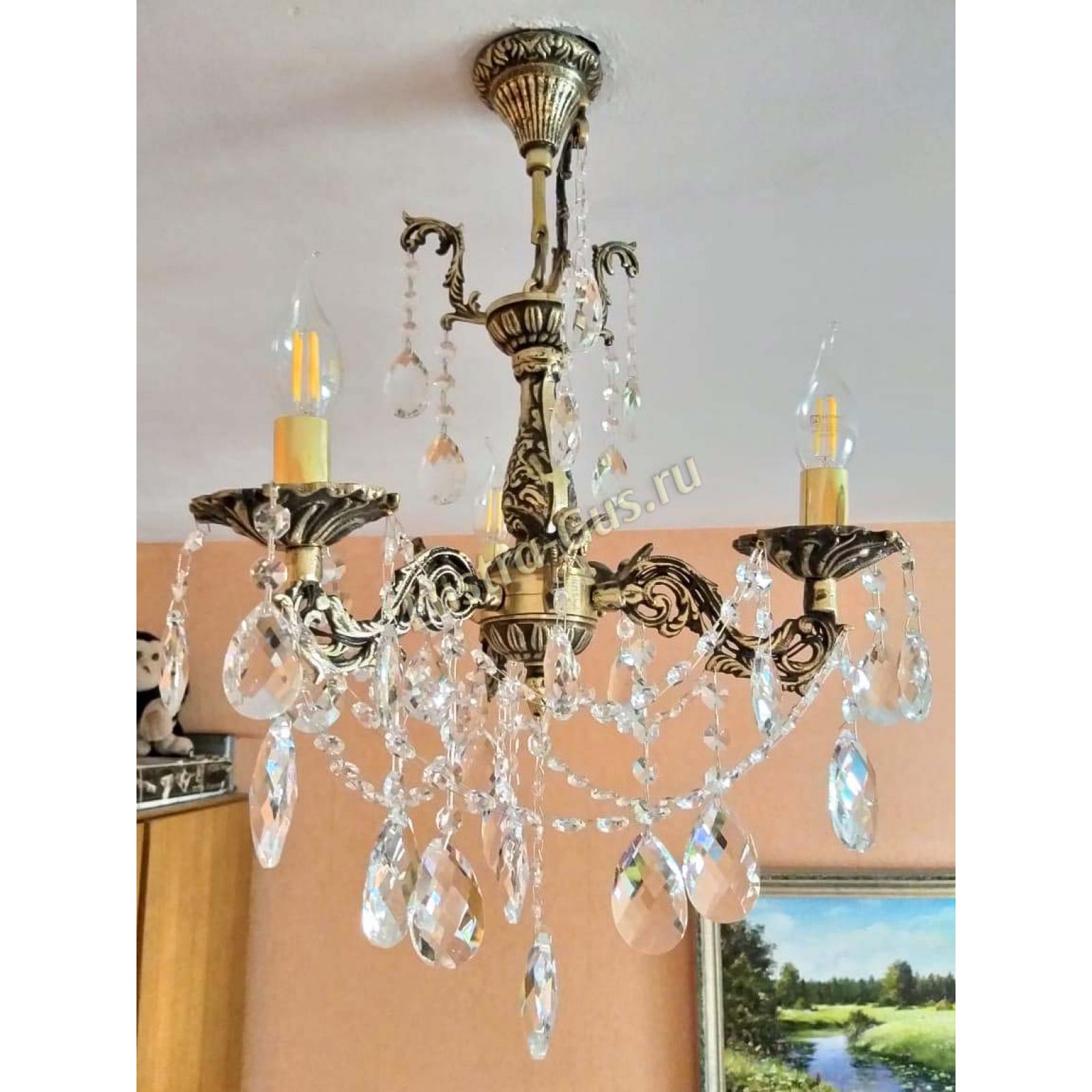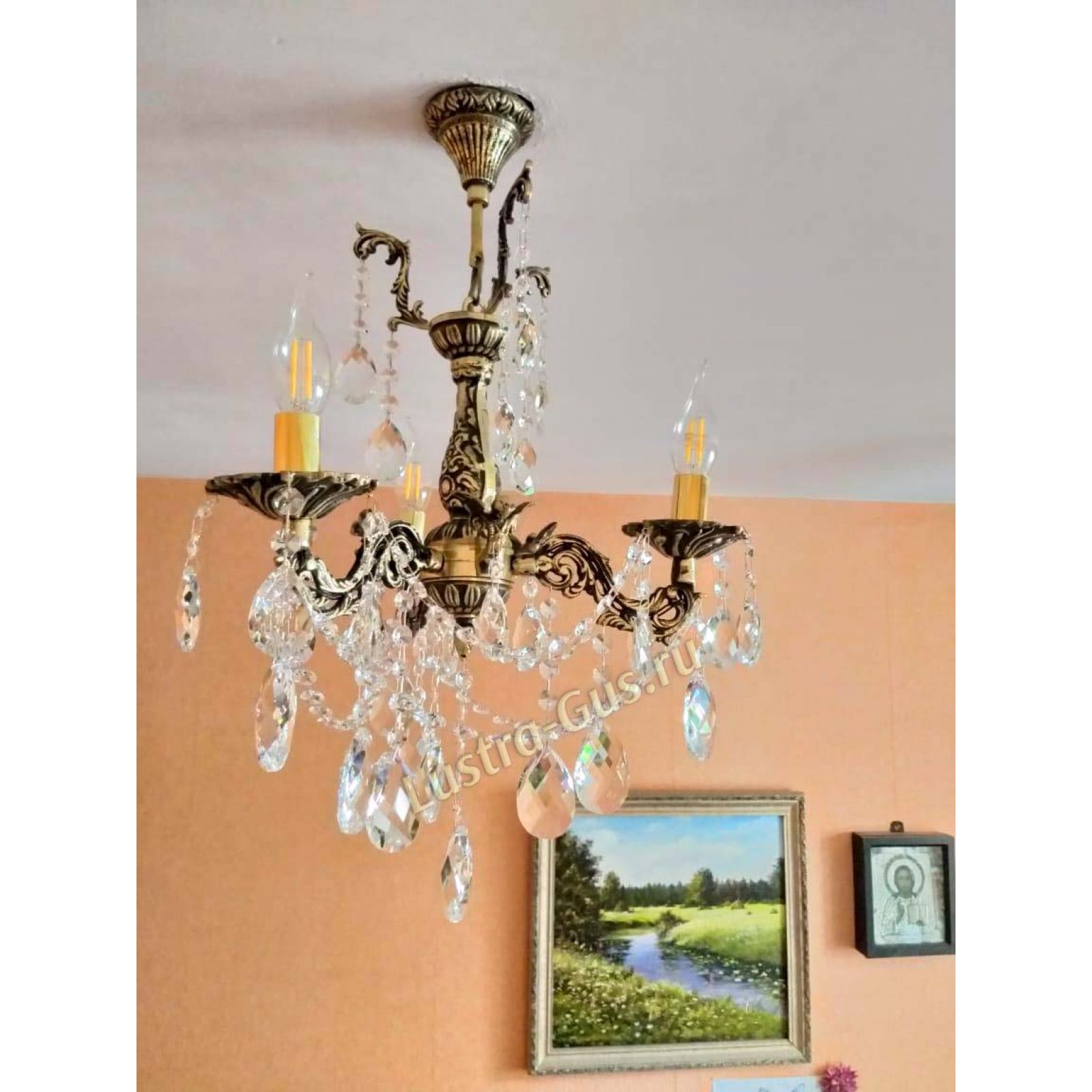 Бронзовая хрустальная люстра превзошла мои ожидания по красоте и качеству. Бронза с чернением, сверкающий хрусталь, нежная, изысканная, притягивает взгляд. В комнате 10 кв. м и 2,7 высотой люстра с тремя рожками хорошо освещает и подходит по размерам. Спасибо!