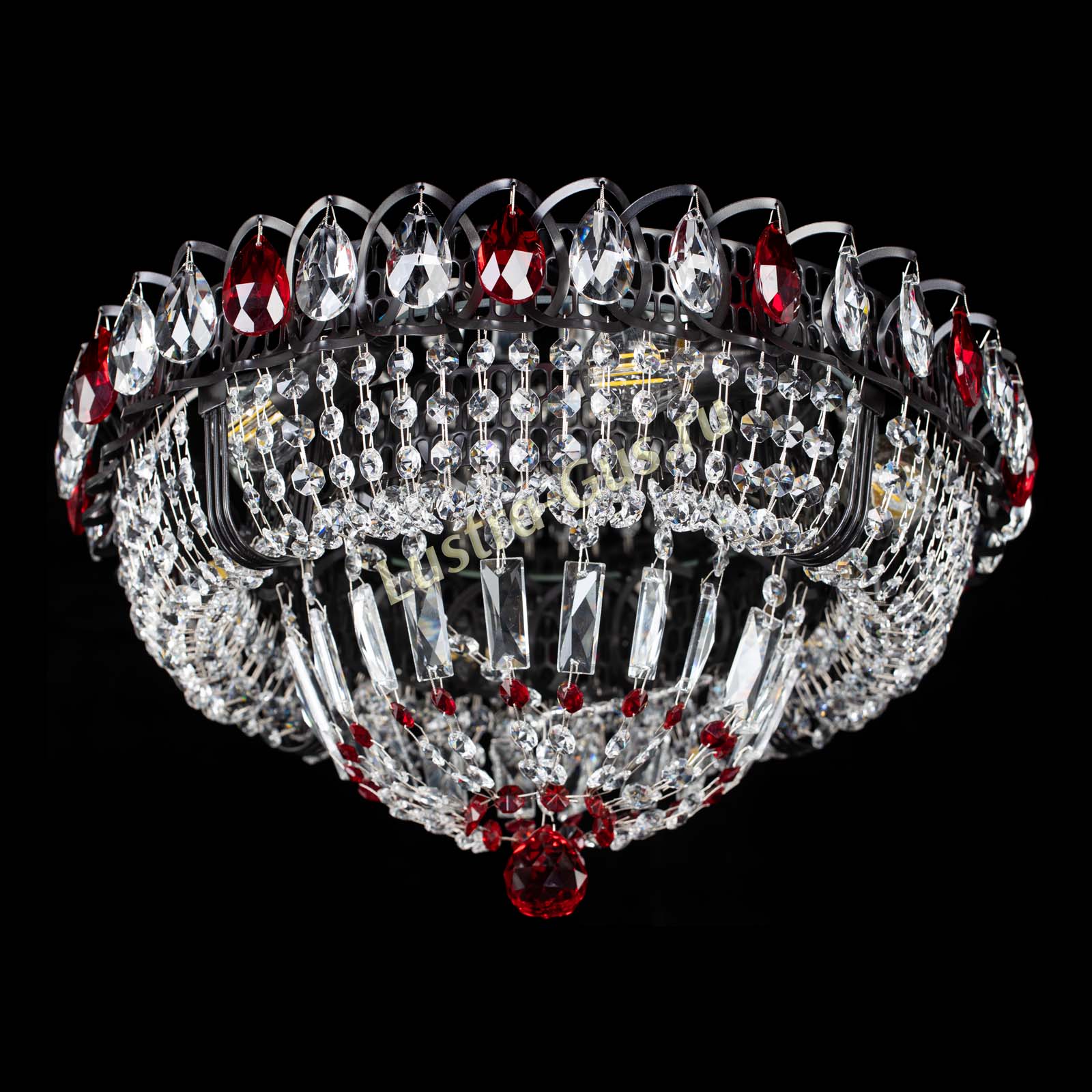Люстра Кольцо Классика Черная с красными подвесками в Сочи