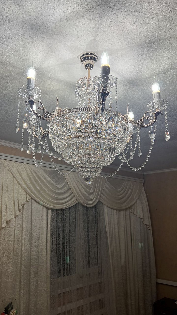 Люстра восхитительна! Не громоздкая, не маленькая, нежная и воздушная. Но при этом роскошная! Хрусталь "вечен" и придает даже простому интерьеру "дорогой" вид. Любуемся каждый день! Спасибо)