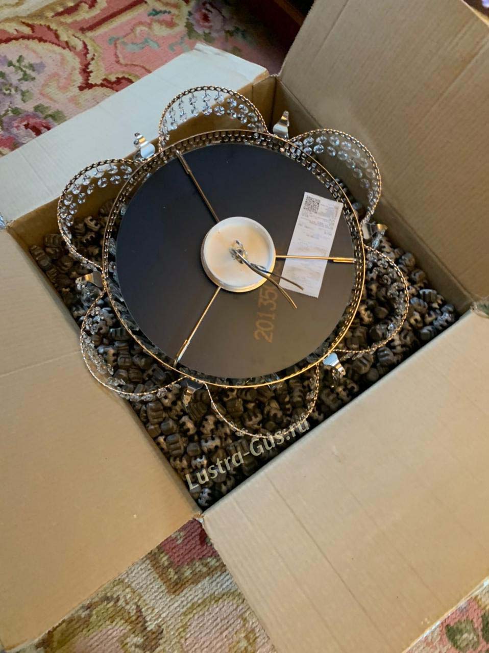 Добрый день. Люстру получили. Круг только погнут был выровняли... не критично. Так все хорошо. Повесили.