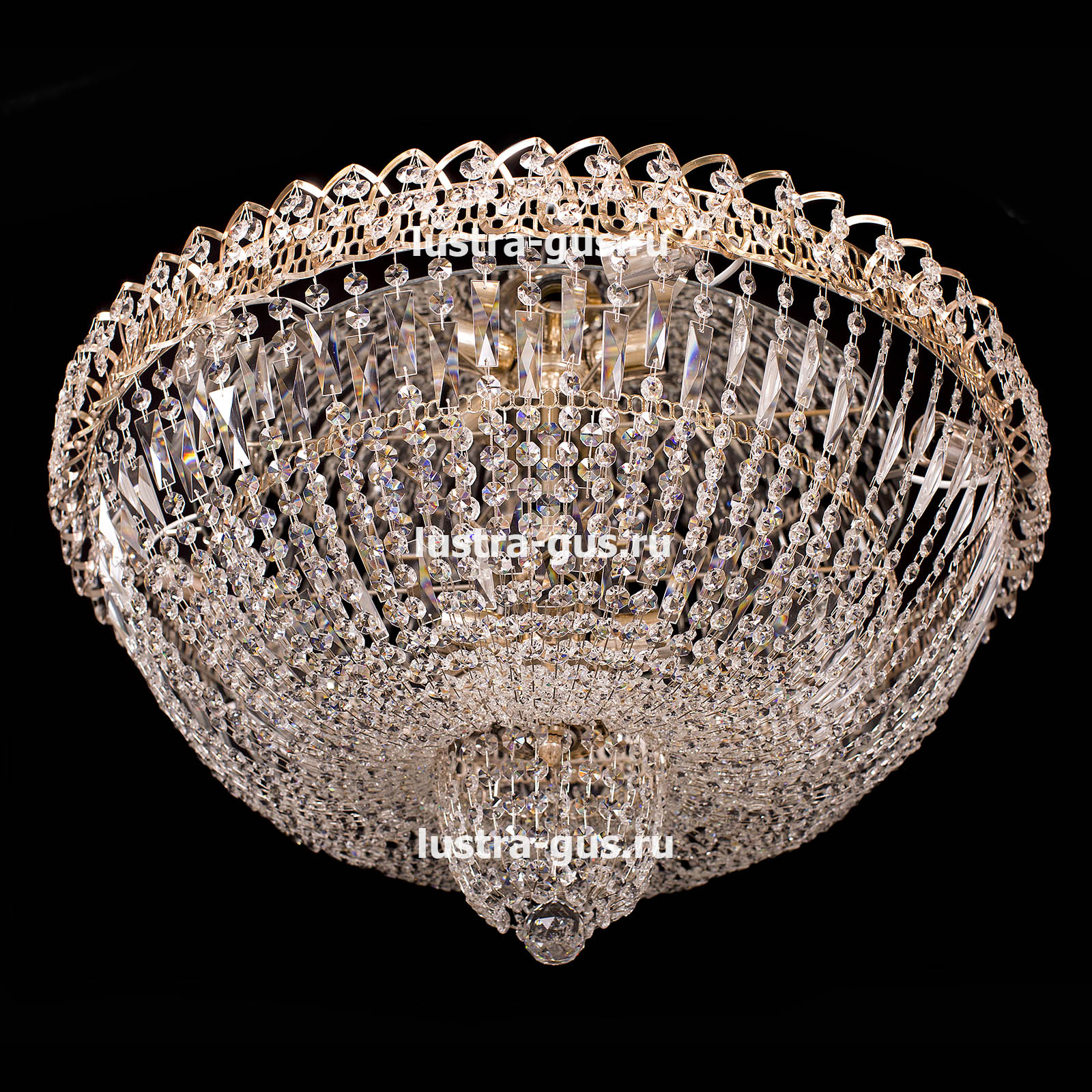 Хрустальная люстра Водопад Кремлёвский оптикон производства Гусь-Хрустальный с зеркалом. Светильник изготовлен из металла с прозрачными хрустальными подвесками. Потолочная люстра Водопад Кремлёвский оптикон хорошо подойдет для помещений с низким потолком и для натяжных потолков. Фурнитутра выполняется в двух цветах: золото или серебро.